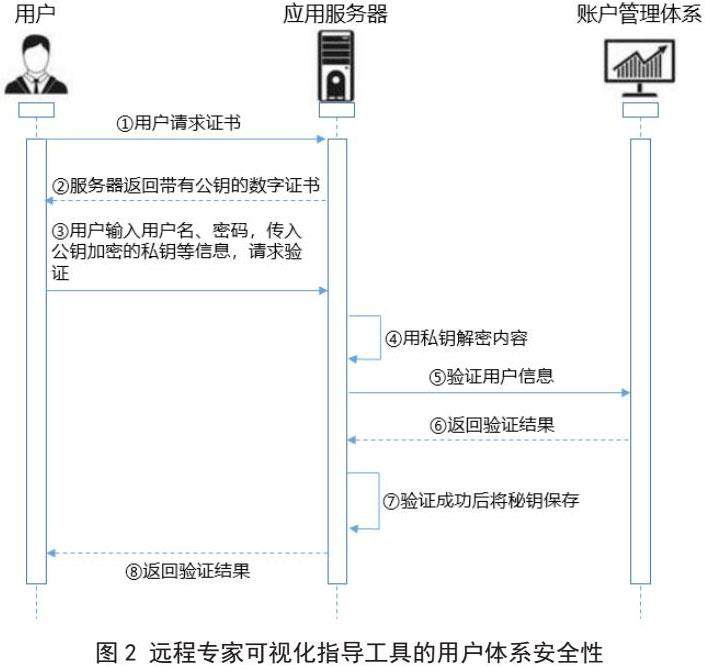 (1)远程会议服务会在现场用户端与专家用户端之间通过用户认证的方式建立起一个安全通道;