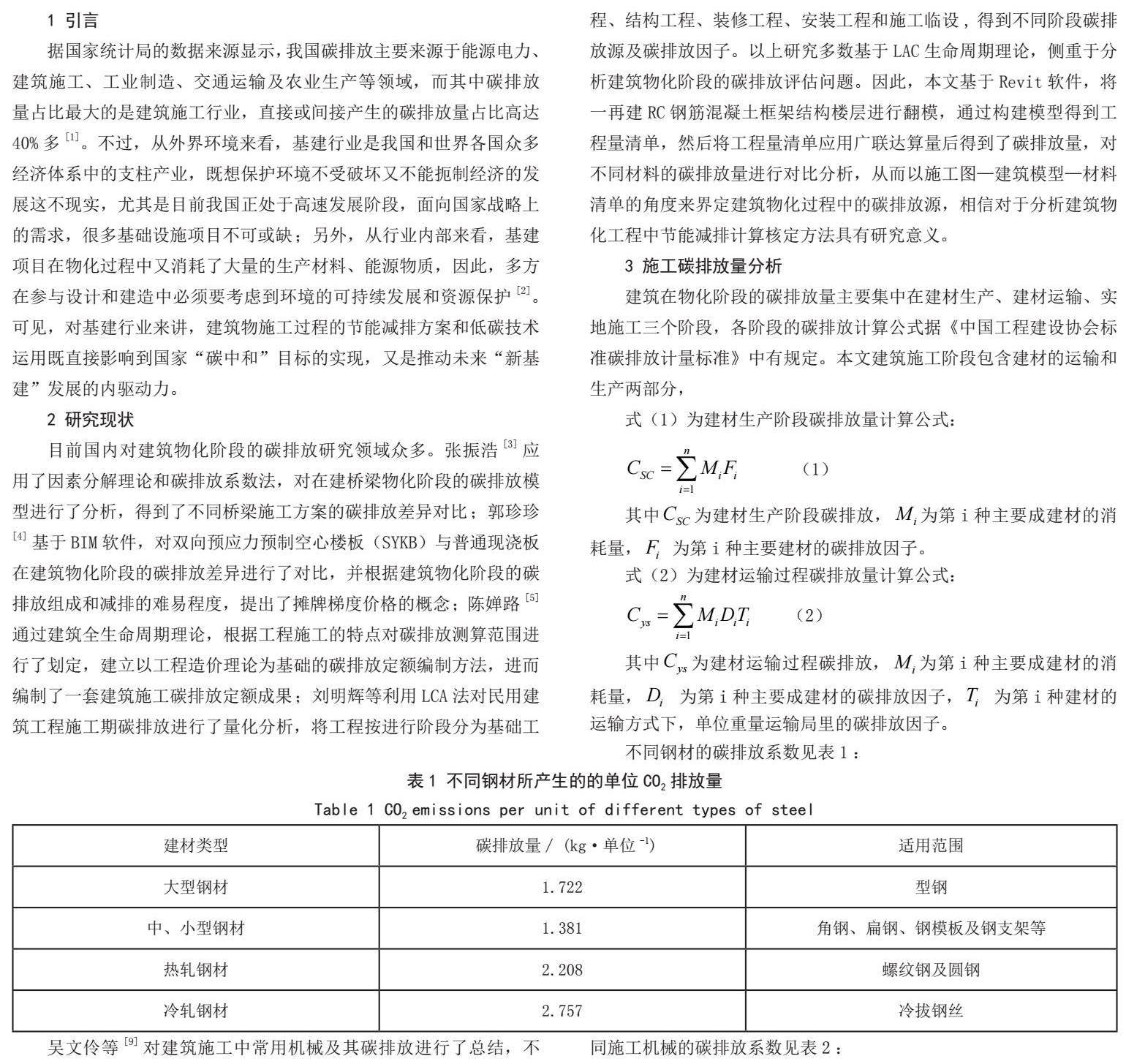关键词:现浇混凝土结构;BIM模型;施工阶段;碳排放因子