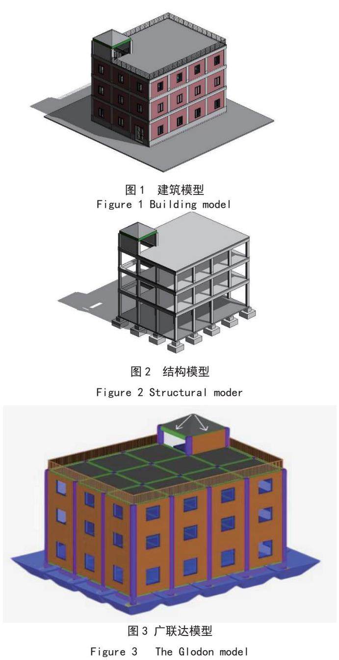 本文选取湖南省一再建RC框架结构房屋为研究对象,建筑面积约538m2,共三层,首层4m,其它层3.2m,屋顶突出部分2.4m,基础形式为柱下独立基础。在得到建筑的相关信息后,首先将既有施工图导入Revit后获得其建筑模型和和结构模型(见图1和图2)。